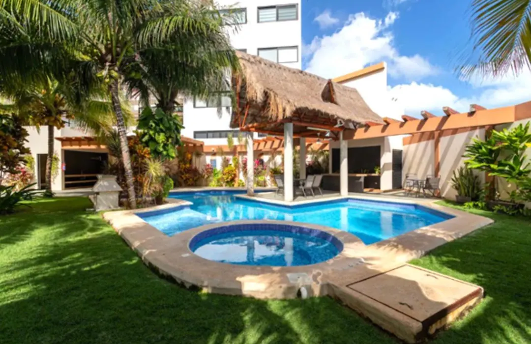 Colectivos cancun to playa del Carmen巴士站距离公寓不远,走路只需10分钟就到了。 客人可以在游泳池游泳。